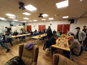 Laten we eerst maar eens beginnen met het rapidtoernooi. Overigens kom ik met mijn verslag niet veel verder dan het vermelden van feiten, want ik heb er bijna niets van gezien (druk genoeg met indelen en spelen van blitz-partijen).