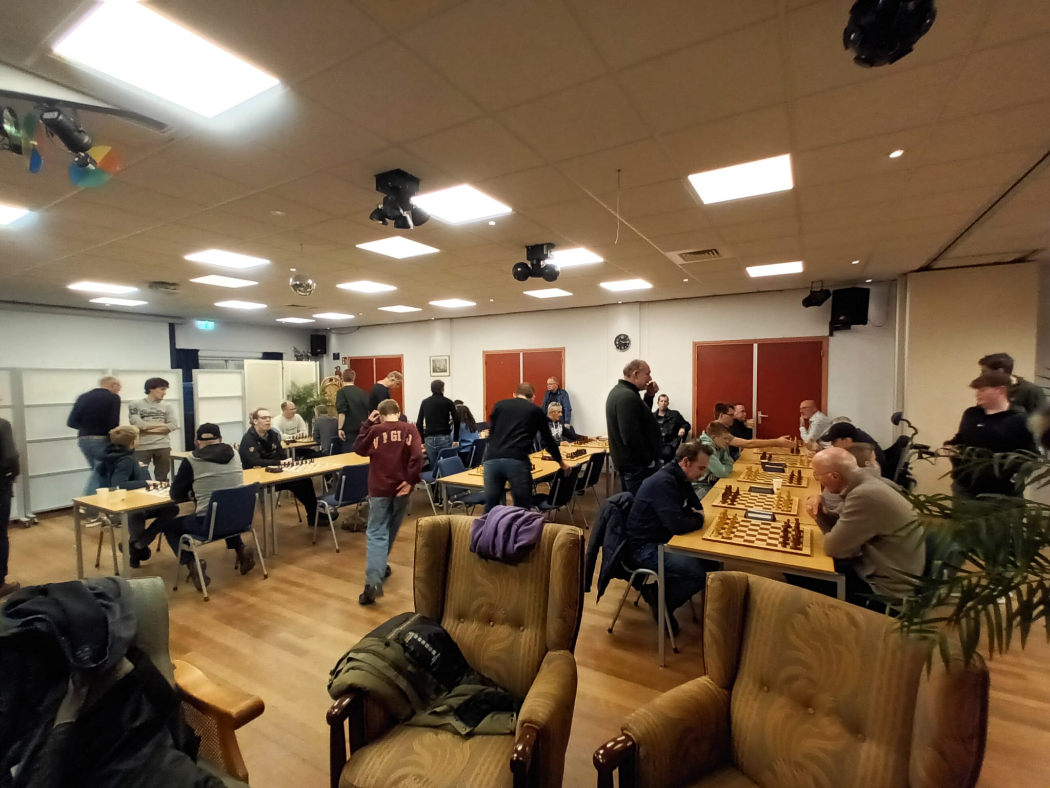 Okay, er deden vier jeugdleden mee, maar dan nog waren we met velen, verdeeld over rapid (16) en blitz (14). Maar er waren ook oud-leden, leden die aanhang mee brachten (Marko Burger nam zoon Frederiko mee en Siebe Schouten nam vader Matthijs mee), mensen die De Zwarte Dame volgen op de site, die dan weer een kennis meenam, die een zoon meenam en weer een kennis van die zoon (zo was het tenminste, geloof ik).